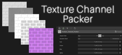 The Texture Channel Packer packs together Metal, Roughness, AO, Height (displacement) maps, or any other grayscale maps that you may want into one convenient map for use in PBR applications. You can have from 2 to 4 maps into one texture quickly.